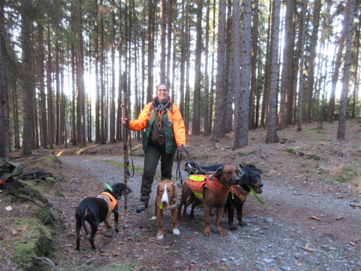 V případě zájmu ze strany organizátora s námi vyjíždějí na lovecké akce i vůdce Hannoverského barváře určeného na případné dosledy postřelené zvěře. Jeden z vůdců může působit i jako trubač. Pro snížení nákladů používáme přívěsný vozík pro 9 psů.
